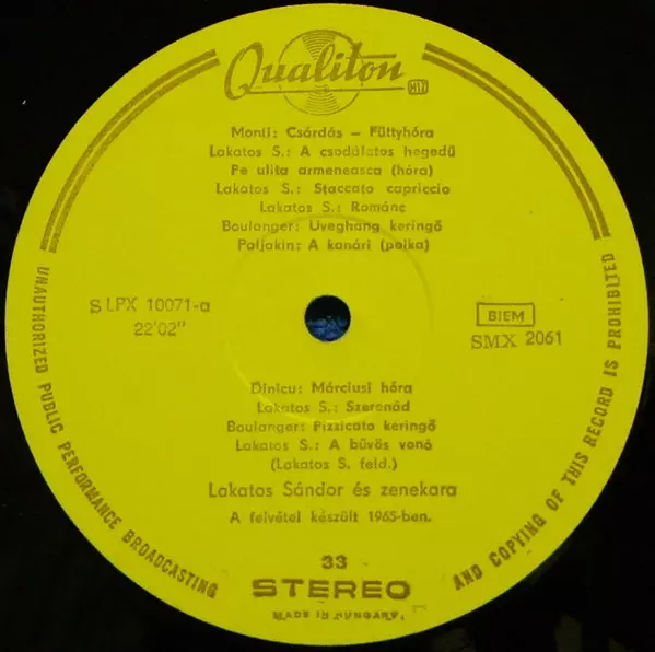 | Artista | Sándor Lakatos And His Gipsy Band |