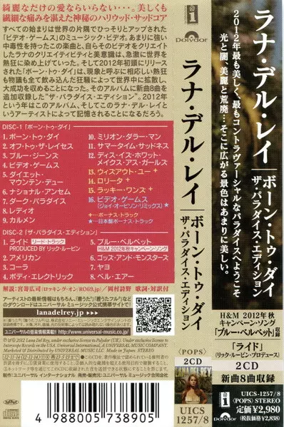 Lana Del Rey: Born To Die (The Paradise Edition) DLX versione su 2CD in deluxe edizione. Questa particolare edizione è stata pubblicata in Giappone nella casa editrice Interscope Records in collaborazione con Polydor in data 3. dicembre 2021.