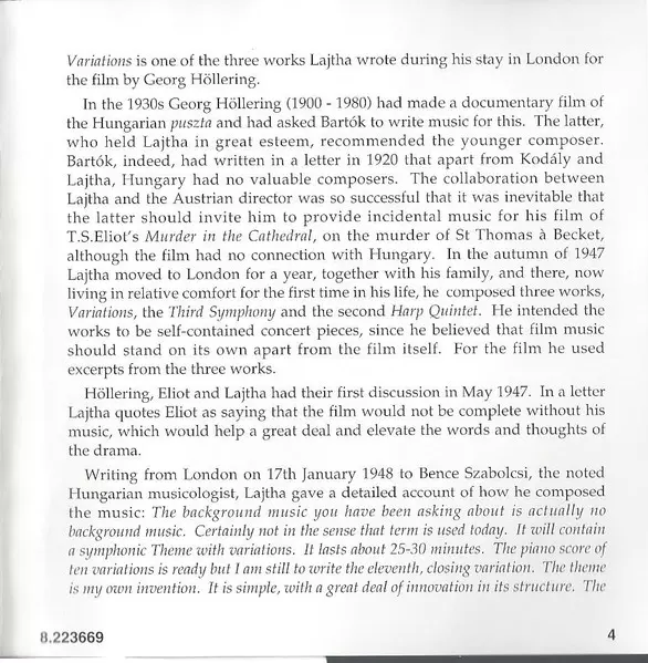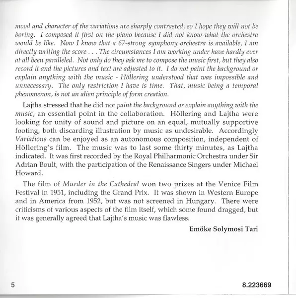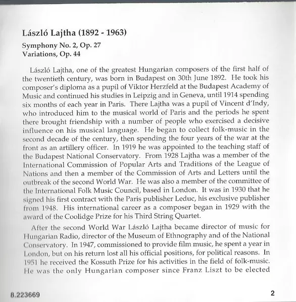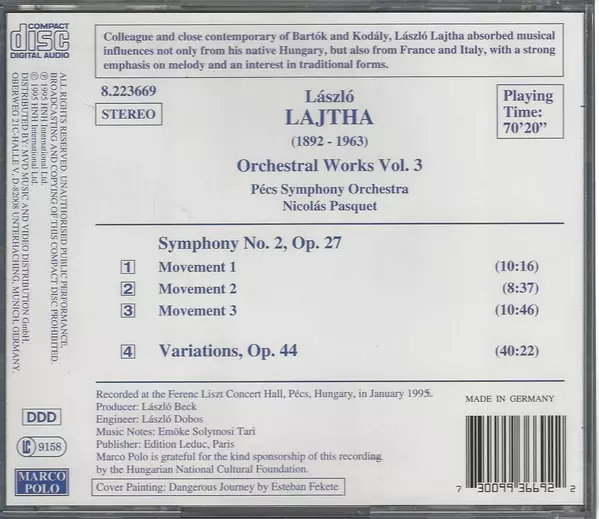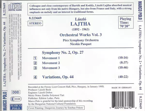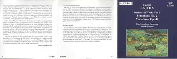 | Artista | Nicolás Pasquet | László Lajtha | Pécs Symphony Orchestra |