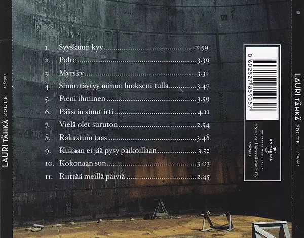 Lauri Tähkä: Polte versione su CD in standard edizione. Questa particolare edizione è stata pubblicata in Finlandia nella casa editrice Universal Music Group in data 1. novembre 2011. Album comprende generi Rock, Pop e Pop Rock.