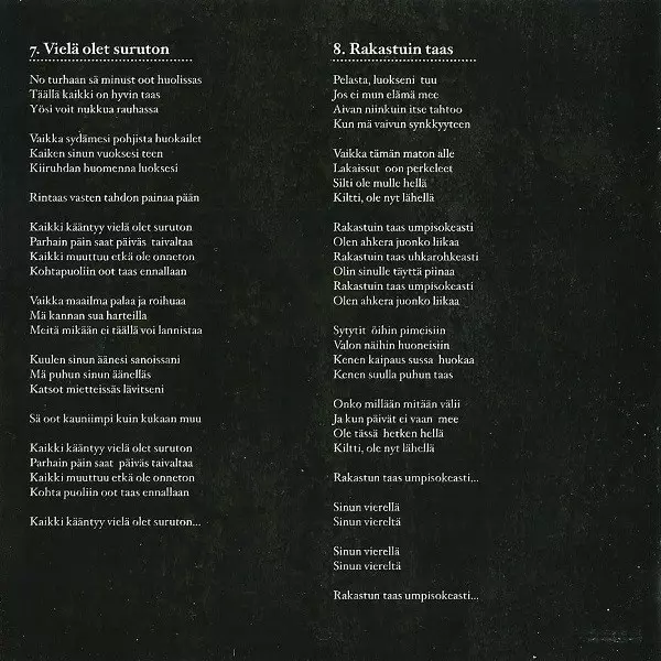 Arranged By Arttu Hasu, Lauri Tähkä, Marko Timonen, Milla Viljamaa, Riku Mattila, Timo Kämäräinen | Composed By Lauri Tähkä | Lyrics By Sinikka Svärd