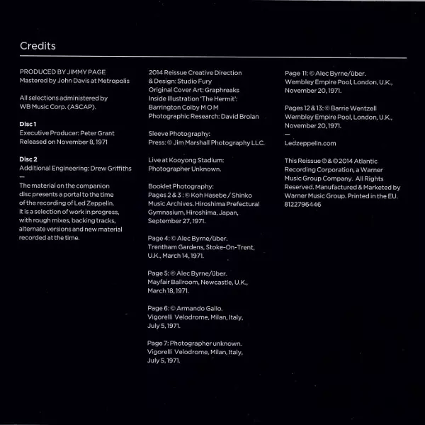 Led Zeppelin's 'IV' as a 2014 reissue: how Jimmy Page likes it ... Jimmy Page's quality offensive continues. Reissues have been announced for a long time. In 2014, their time has come: they're here. Albums "I" to "III" were released at the end of May, and "IV", also known as "Zoso", "Four Symbols" or "Untitled", will be available from October 20...