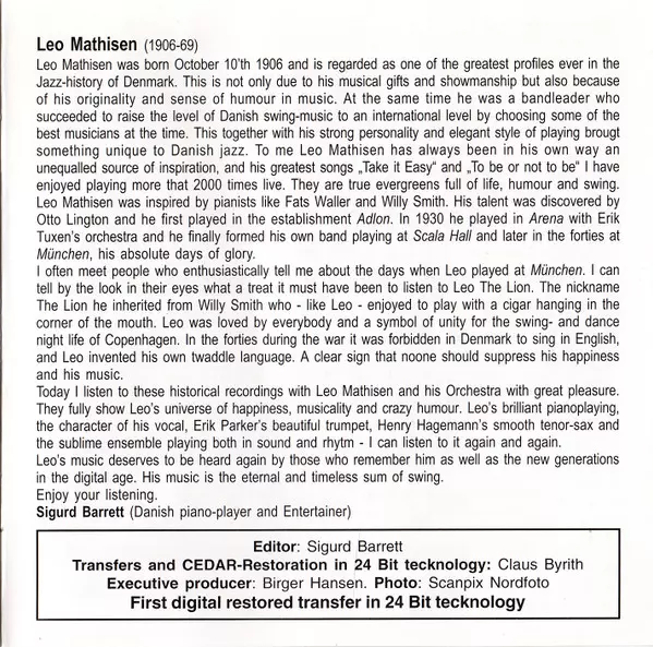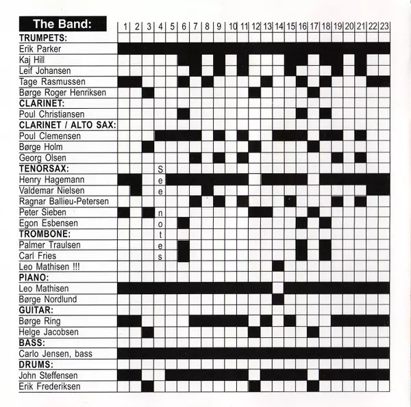 | Alto Saxophone, Clarinet Poul Clemensen | Bass Carlo Jensen | Drums Erik Kragh | Piano Leo Mathisen | Tenor Saxophone Knut Knutsson | Trumpet Erik Parker (2) | Vocals Leo Mathisen | Written-By Erik Parker (2), Leo Mathisen, Trummy Young | |||
