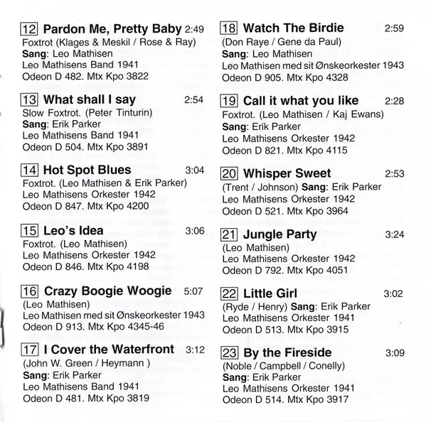 | 12 | Leo Mathisens Band: Pardon Me, Pretty Baby | 2:49 min | |