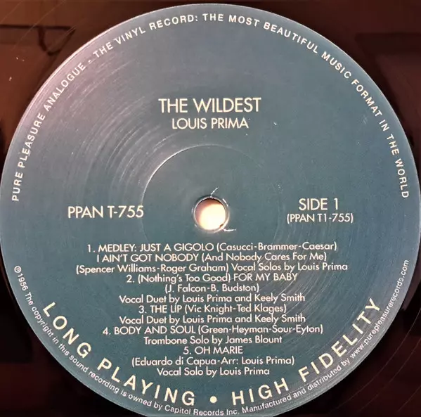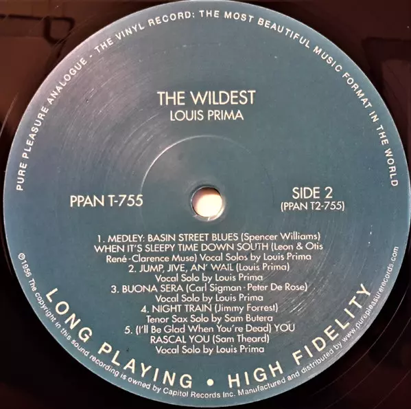 Louis Prima: The Wildest! LTD versione su vinile LP in limitati rimasterizzati edizione. Questa particolare edizione è stata pubblicata in REGNO UNITO nella casa editrice Pure Pleasure Records in data 6. dicembre 2013.
