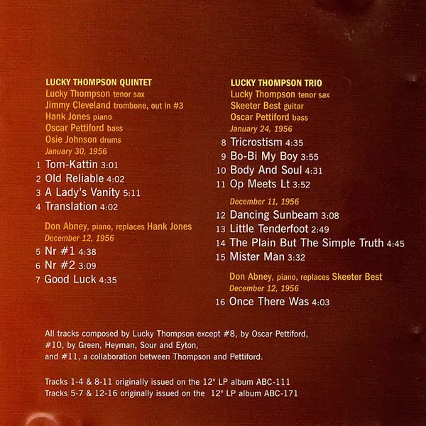 | Artista | Oscar Pettiford | Lucky Thompson |