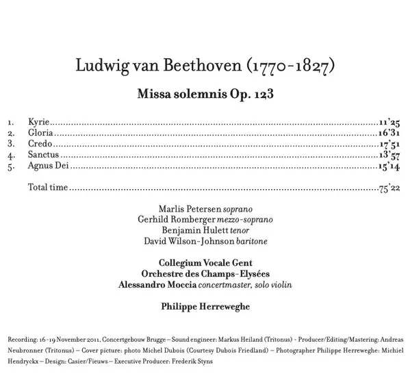 Artista | Ludwig van Beethoven | Philippe Herreweghe | Collegium Vocale | Orchestre Des Champs Elysées |
