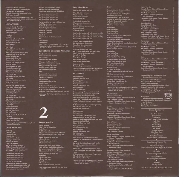 Backing Vocals Curtis King, Frank Simms, George Simms | Drum Programming [Linn And Simmons Drum Machine Programming] Jimmy Bralower | Guitar, Synthesizer [Synclavier II] Nile Rodgers | Synthesizer [Assorted Synthesizers, Bass Synthesizer] Rob Sabino | Written-By Madonna, Stephen Bray