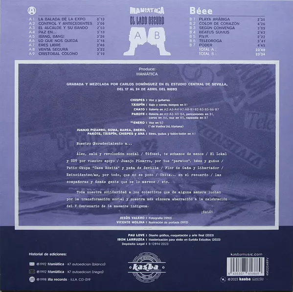Maniatica: El Lado Oscuro versione su vinile LP in standard edizione. Questa particolare edizione è stata pubblicata in Spagna nella casa editrice Kasba Music in data 21. giugno 2024. Album comprende generi Rock, Reggae, Alternative rock e Punk.
