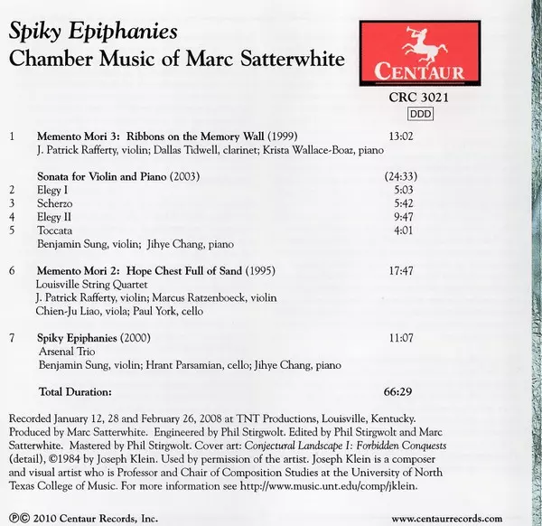 | Titolo | Spiky Epiphanies: Chamber Music Of Marc Satterwhite |