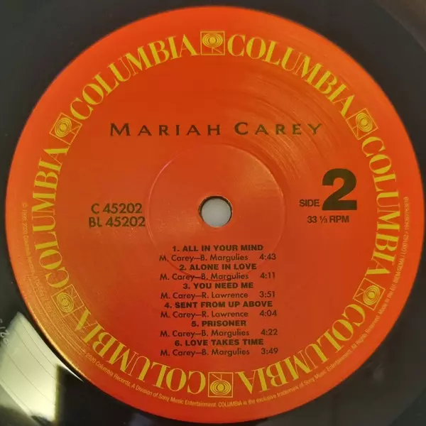 Mariah Carey: Mariah Carey versione su vinile LP in rimasterizzati edizione. Questa particolare edizione è stata pubblicata in Europa nella casa editrice Columbia in collaborazione con Legacy in data 2. ottobre 2020.