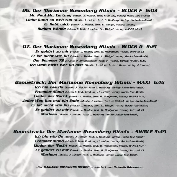 | Der Marianne Rosenberg Hitmix - Block F | 6:03 min | |