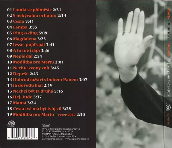 Marta Kubišová Her most recent album, Depeche (Selected Songs 1965-2019), was released in 2019 and features a collection of her greatest hits from 1965 to 2019. The album includes fan favorites such as "Flow," "By Chance," and "Life is Just a Chance," as well as new songs such as "Depeche" and "I Don't Want to Be Alone."