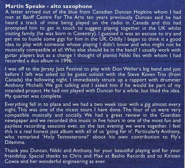 | Artista | Martin Speake | Nikki Iles | Duncan Hopkins | Anthony Michelli |