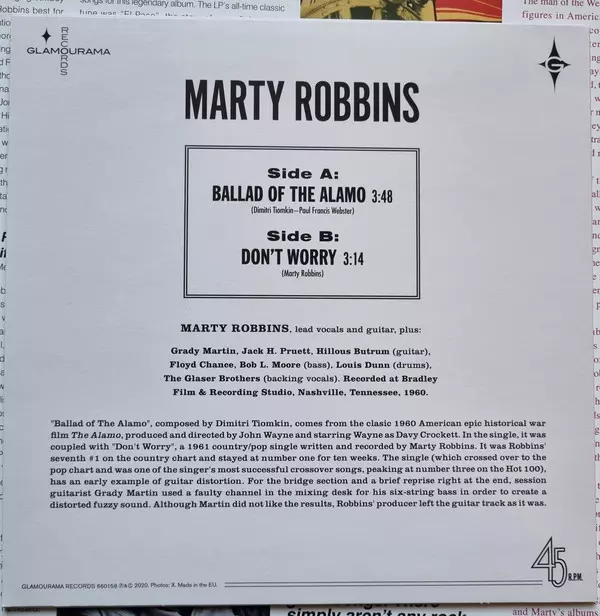 "Tyto melancholické westernové balady z jeho pátého z 52 studiových alb jsou zárukou hudebního romantického rodea." (Good Times, červen/červenec 2022) - singl obsahuje skladby "Ballad Of The Alamo" a "Don't Worry".