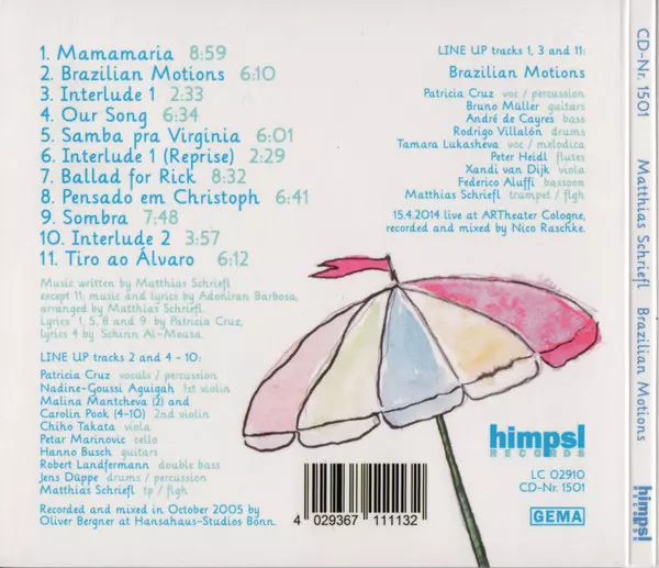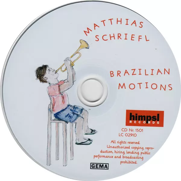Matthias Schriefl: Brazilian Motions versione su CD in standard edizione. Questa particolare edizione è stata pubblicata in Germania nella casa editrice Himpsl Records in data 28. giugno 2016. Album comprende generi Jazz e Musica latina.