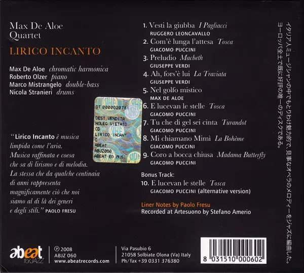 CD Max De Aloe Quartet: Lirico Incanto