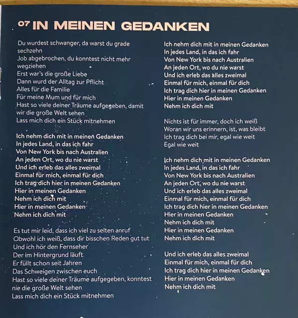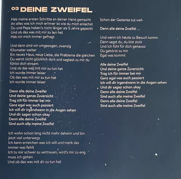 Cello Felix Gerlach | Producer, Drums, Percussion, Piano, Guitar, Bass, Backing Vocals Steffen Graef | Violin Laura Zimmermann (2) | Written-By Kristoffer Hünecke, Max Giesinger, Steffen Graef