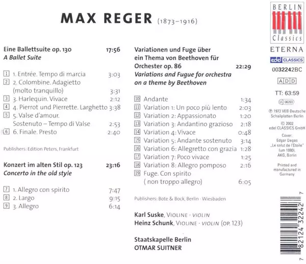 | Artista | Staatskapelle Berlin | Max Reger | Otmar Suitner |