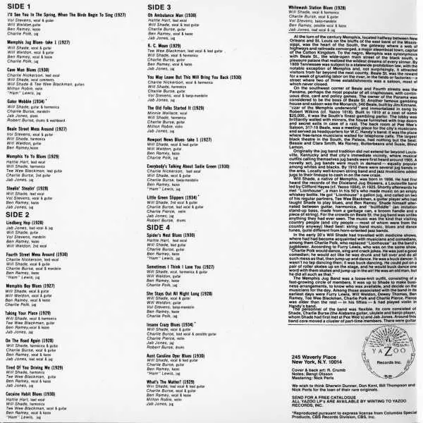 Memphis Jug Band: Memphis Jug Band versione su vinile 2LP in standard edizione. Questa particolare edizione è stata pubblicata in Stati Uniti nella casa editrice YAZOO in data 10. agosto 2018. Album comprende generi Blues, Country-Blues, Memphis Blues e Jug Band.