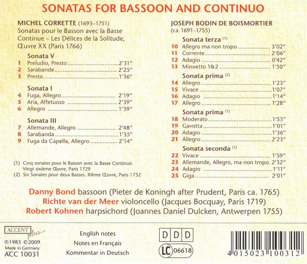 | Titolo | Sonatas For Bassoon And Continuo |