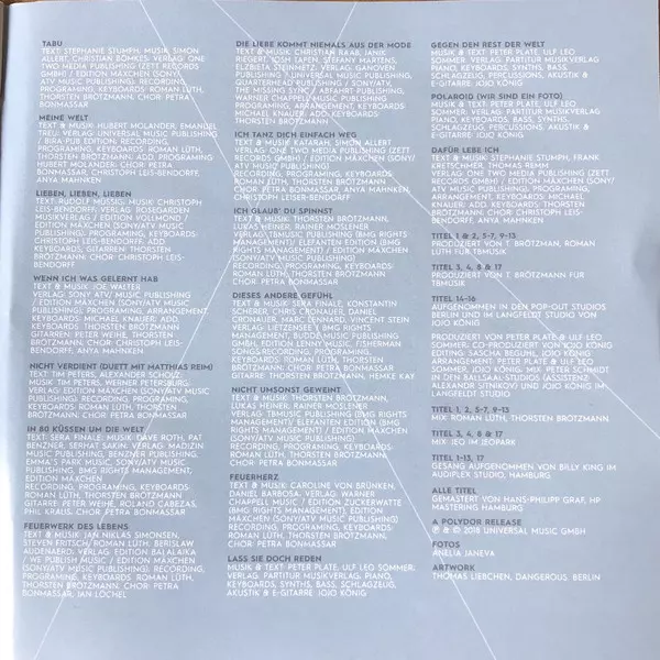 Michelle: Tabu versione su CD in standard edizione. Questa particolare edizione è stata pubblicata in Germania, Austria e Svizzera nella casa editrice Polydor in data 25. maggio 2018. Album comprende generi Pop e Schlager.