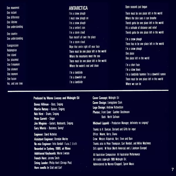 On their seventh album "Blue Sky Mining", the band focused on international music on tracks like "One Country", "Blue Sky Mine" and "Forgotten Years" without losing their distinctive Australian voice. On a US tour following the album's release, the band drew attention to the environmental disaster caused by an Exxon tanker running aground in Ala...