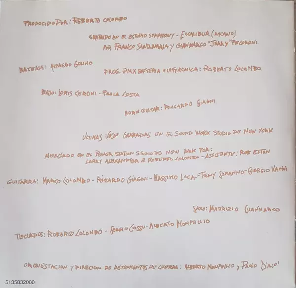 Acoustic Guitar Riccardo Giagni | Backing Vocals Gianmarco "Jerry" Pecoroni, Peter Hammill | Bass Loris Ceroni | Choir Alberto Mompellio, Antonella Ruggiero, Carlo Marrale, Elio Aldrighetti, Giancarlo Golzi, Giorgio Vanni, Massimo Schiappadori, Miguel Bosé, Roberto Battaglia, Roberto Colombo, Sergio Cossu, Vittorio Ieoravante | Drums Alfredo Golino | Guitar Tony Soranno | Keyboards, Programmed By Roberto Colombo | Percussion [Electronic] Franco Santamaria | Strings Alberto Mompellio, Roberto Colombo | Synthesizer, Arranged By Marco Colombo | Written-By Massimo Schiappadori, Miguel Bosé, Roberto Battaglia
