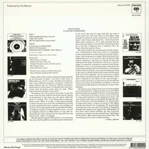 Filles de Kilimanjaro (named after the African coffee, Kilimanjaro) is one of the many masterpieces American composer and trumpeter Miles Davis recorded during his lifetime. It can be considered a transitional album, situated between his "acoustic" and "electric" periods. He recorded this incredible work of modern jazz with musical greats such a...