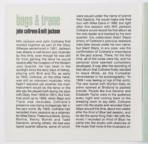 | Artista | John Coltrane | Milt Jackson |
