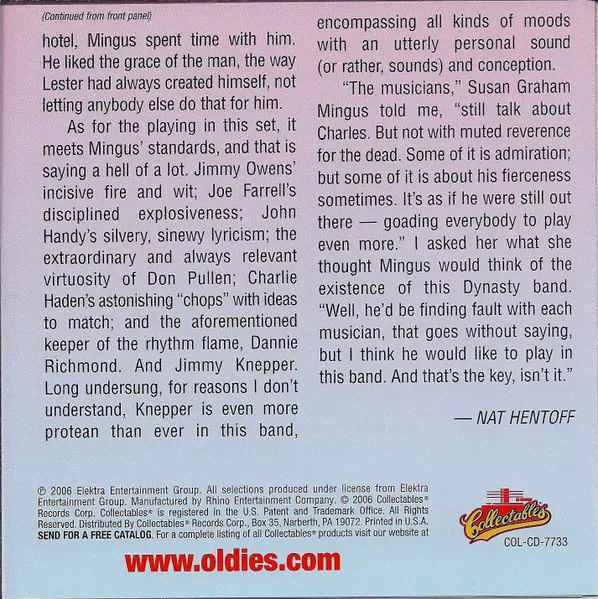 | Artista | Charlie Haden | Joe Farrell | Don Pullen | Dannie Richmond | John Handy | Mingus Dynasty | Jimmy Knepper | Jimmy Owens |