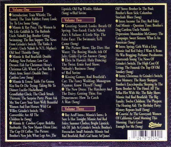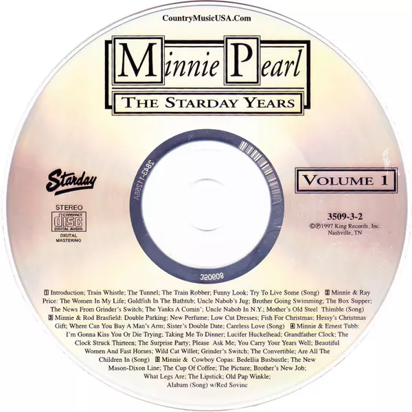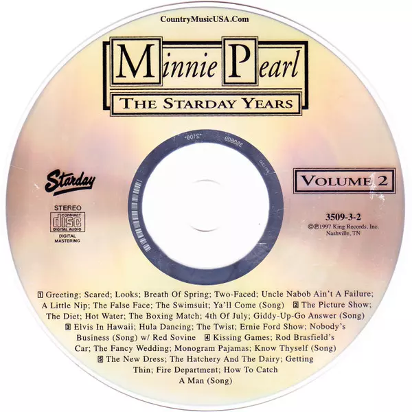 Minnie Pearl: The Starday Years - Classic Minnie Pearl versione su 3CD in rimasterizzati edizione. Questa particolare edizione è stata pubblicata in Stati Uniti nella casa editrice Starday Records in data 24. marzo 1998. Album comprende generi Folk, World, & Country, Non-Music, Country e Komedie.