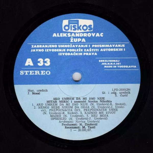 Titolo | Ako Umrem Da Mi Žao Nije |