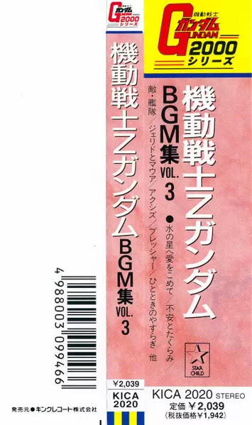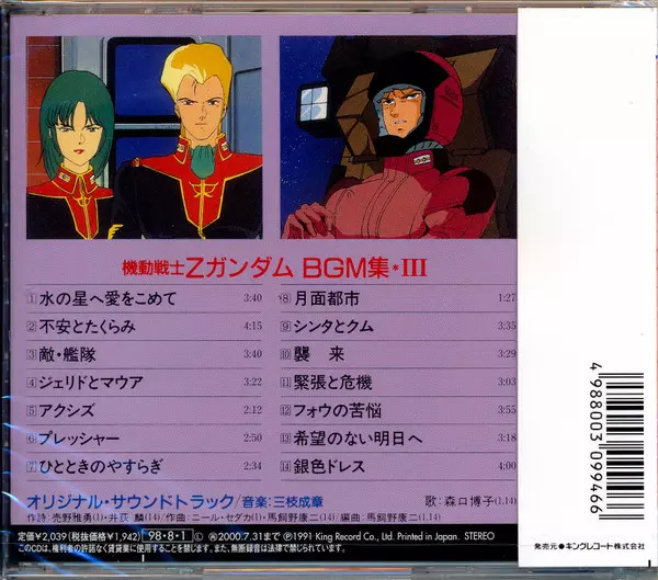 | Titolo | Mobile Suit Z Gundam BGM Collection Vol.3 = 機動戦士Zガンダム BGM集 Vol.3 |