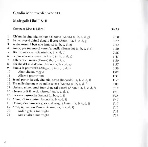| Artista | Claudio Monteverdi | Krijn Koetsveld | Le Nuove Musiche |