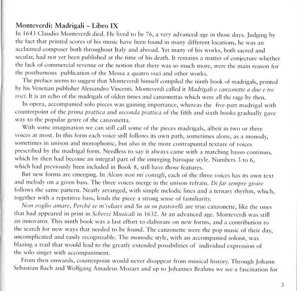 | Artista | Claudio Monteverdi | Krijn Koetsveld | Le Nuove Musiche |