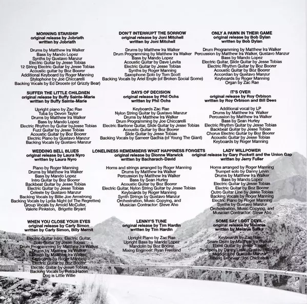 Acoustic Guitar Boz Boorer | Backing Vocals Sameer Gadhia | Baritone Guitar [Electric Baritone Guitar], Slide Guitar Jesse Tobias | Drum Programming Joe Chiccarelli | Drums Matt Walker | Guitar [Nylon String Guitar] Gustavo Manzur | Keyboards Zac Rae | Written-By Phil Ochs