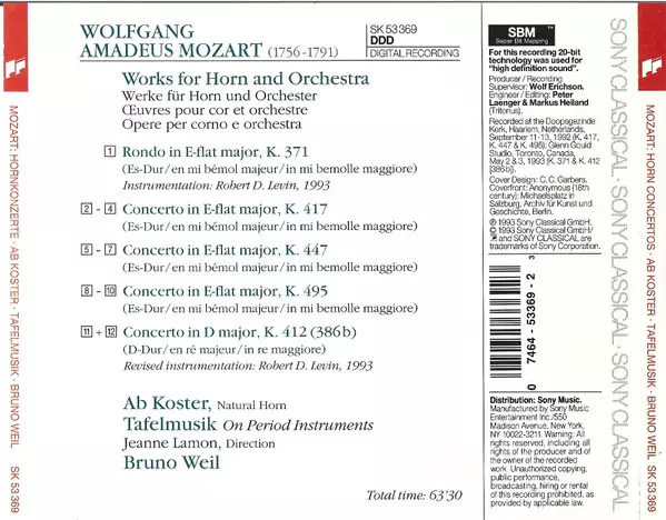 | Artista | Wolfgang Amadeus Mozart | Tafelmusik Baroque Orchestra | Bruno Weil | Ab Koster |