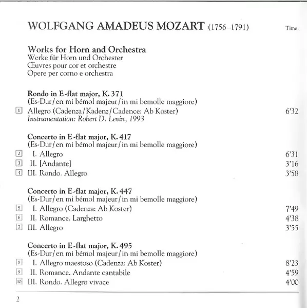 | Concerto In E-Flat Major, K. 417 | ||