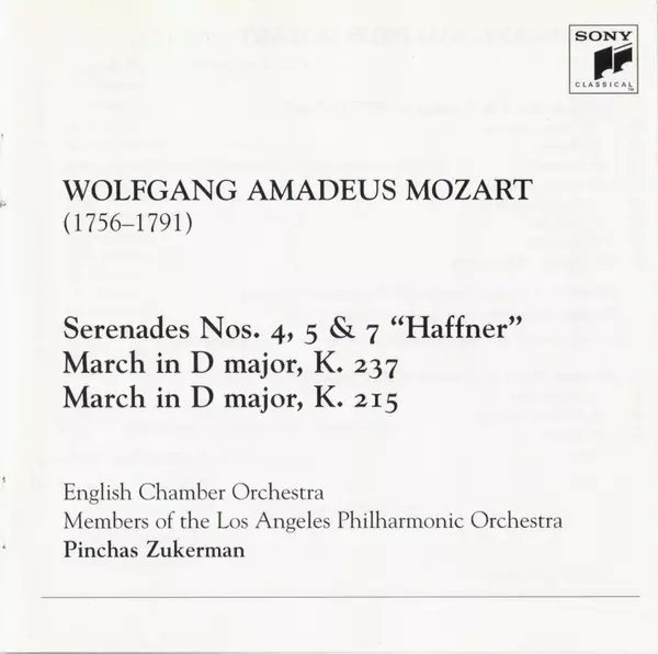 | Artista | Wolfgang Amadeus Mozart | English Chamber Orchestra | Pinchas Zukerman | Members Of The Los Angeles Philharmonic |