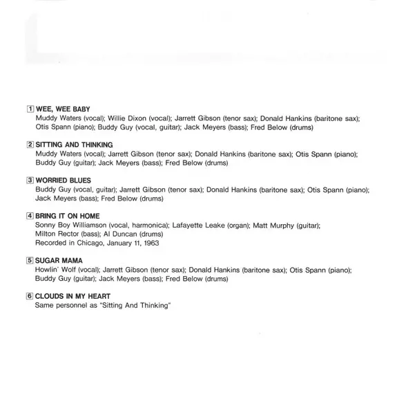 | 1 | Muddy Waters, Buddy Guy, Willie Dixon: Wee, Wee Baby | 4:40 min | |
