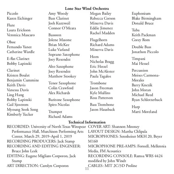 | Artista | Eugene Corporon | Salvador Brotons | North Texas Wind Symphony | Lone Star Wind Orchestra | Barcelona Clarinet Players | Luis Serrano Alarcón | Jesus Santandreu | Oscar Navarro | José Rafael Pascual Vilaplana |