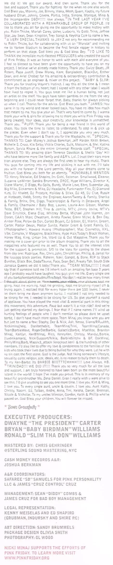Nicki Minaj: Pink Friday versione su CD in standard edizione. Questa particolare edizione è stata pubblicata in REGNO UNITO nella casa editrice Cash Money Records in collaborazione con Universal Motown e Young Money Entertainment in data 14. marzo 2023. Album comprende generi Hip Hop e RnB/Swing.