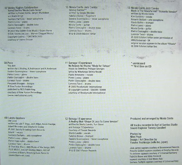 | 2-11 | Sunaga T Experience: No Reason No Rhyme (Nicola Conte Plays A Mode For Tatsuo) | 5:20 min | |