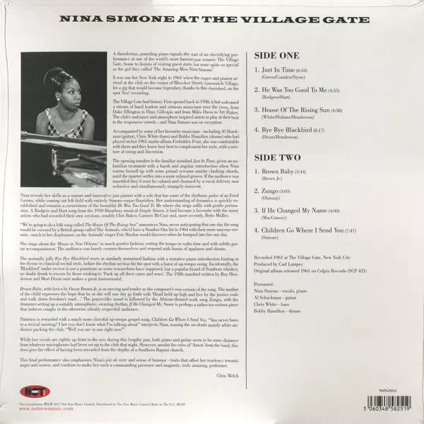 Nina Simone's concert at one of New York's most famous jazz clubs, The Village Gate, opens with thunderous piano playing. It was late on a hot night in 1961 when "The Marvelous Miss Nina Simone" arrived at the club on the corner of Bleecker Street in Greenwich Village to play a legendary concert that was also spontaneously recorded live. Nina's ...