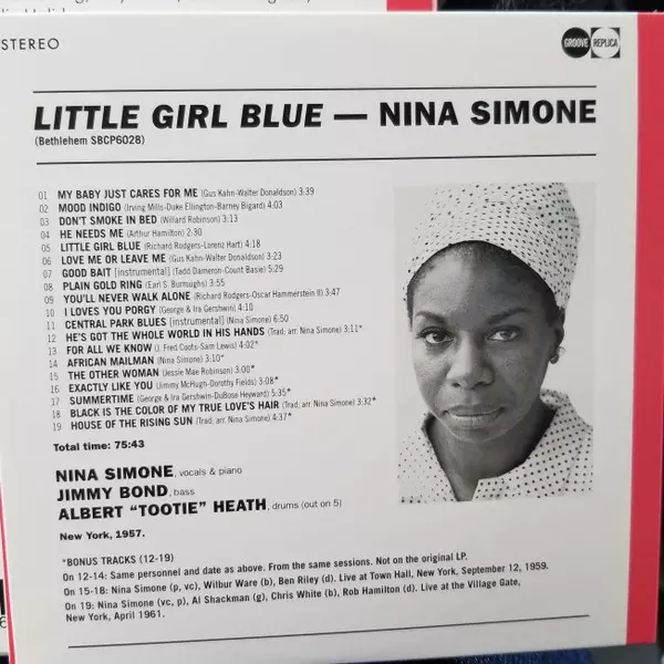 Little Girl Blue (also known as My Baby Just Cares for Me), here in stereo and a rare mono version, was Nina Simone's debut album and first ever studio recording. At the age of twenty-five, it was a huge success that led to a fabulous career that saw her make more than 80 studio recordings. It includes timeless classics such as "I Loves You Porg...