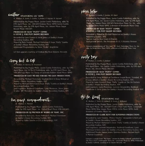 Engineer [2nd] Lynn Montrose, Rasheed Goodlowe, Steve Jones (7) | Harpsichord Carlos "Six July" Broady | Mixed By Michael Patterson, Sean Combs | Recorded By Doug Wilson, Lane Craven, Prince Charles Alexander, Rasheed Goodlowe, Rich July | Written-By Christopher Wallace, Nashiem Myrick, Sean Combs, Stevie J