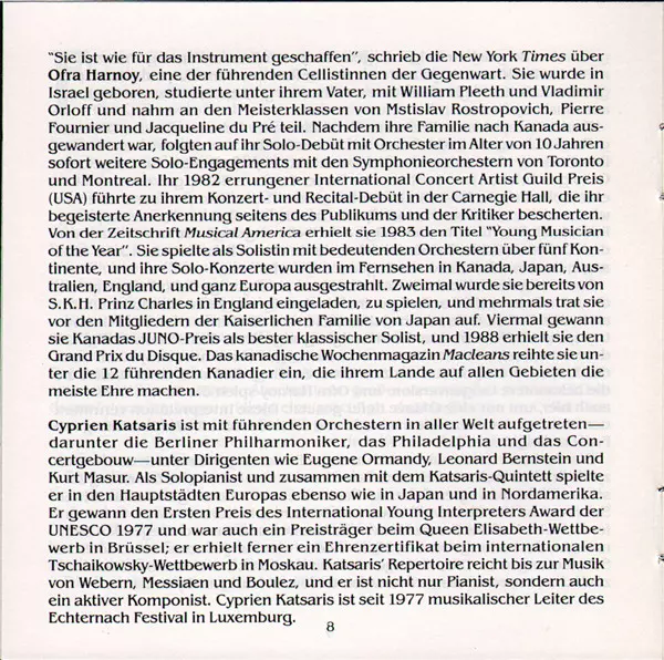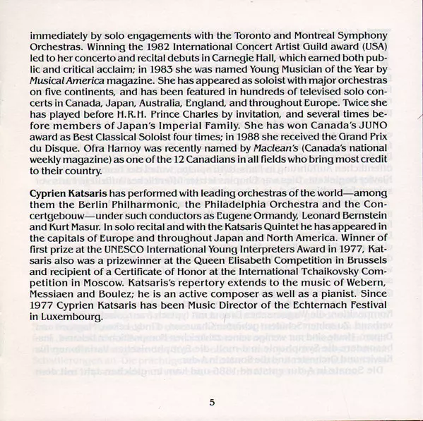 | Artista | Frédéric Chopin | César Franck | Cyprien Katsaris | Ofra Harnoy |