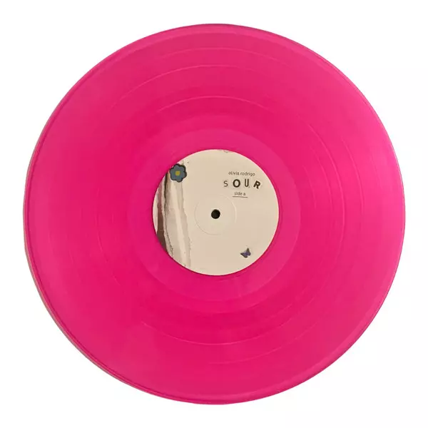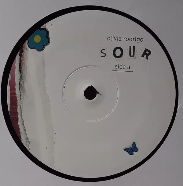 Olivia Rodrigo: Sour versione su vinile LP in standard edizione. Questa particolare edizione è stata pubblicata in Europa e Stati Uniti nella casa editrice Geffen Records in data 20. agosto 2021.