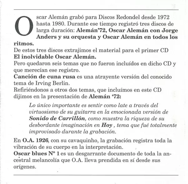 | Artista | Oscar Aleman |